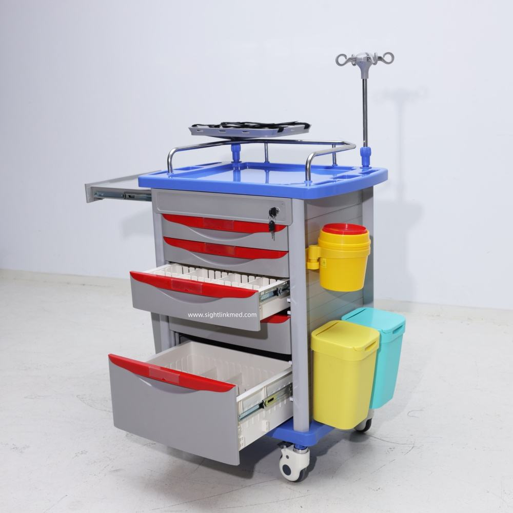 Hospital Medicine Trolley Mobile Treatment Cart ABS Emergency Trolley Medical ABS Crash Cart