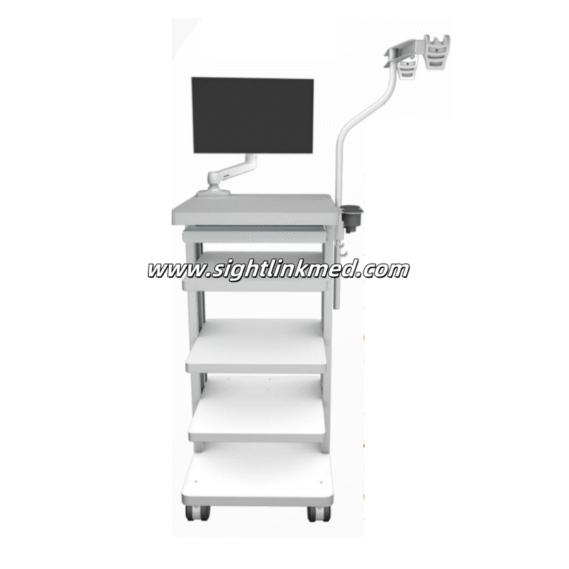 4. The left side of the body: embedded multi-purpose platform (the platform can be interchanged with the right side of the infusion rack), embedded retractable sling design sub-table, removable large storage box;