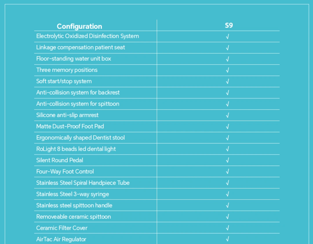 This dental chair uint is desined with Electrolytic oxidized disinfection system