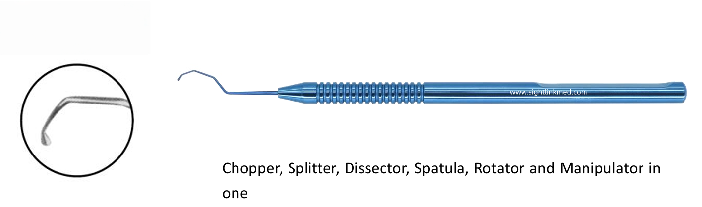 The Ophthalmic Minami M Hook has Chopper, Splitter, Dissector, Spatula, Rotator and Manipulator in one