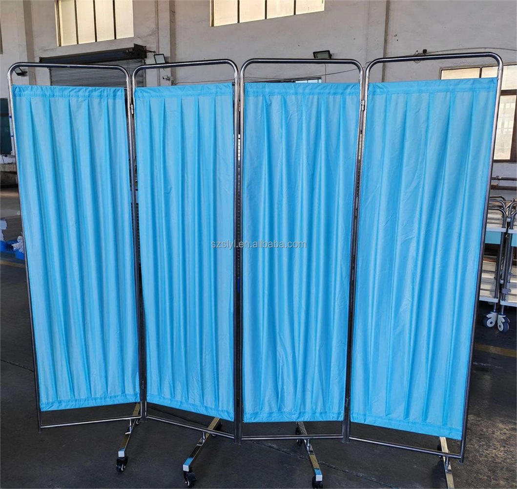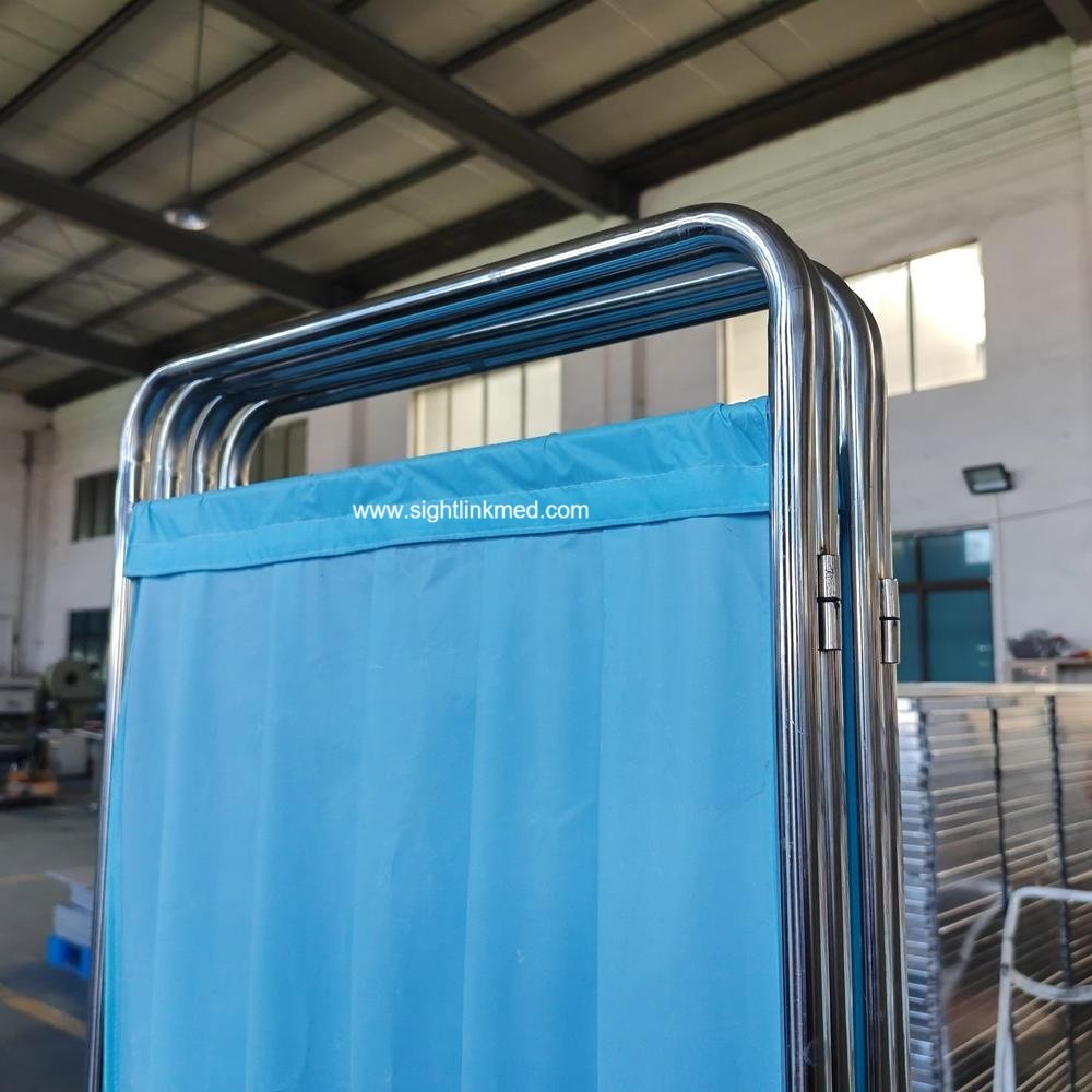 Medical Stainless Steel Ward Screen Partition Blackout Curtain with Casters Folding Hospital Privacy Screen Black Color